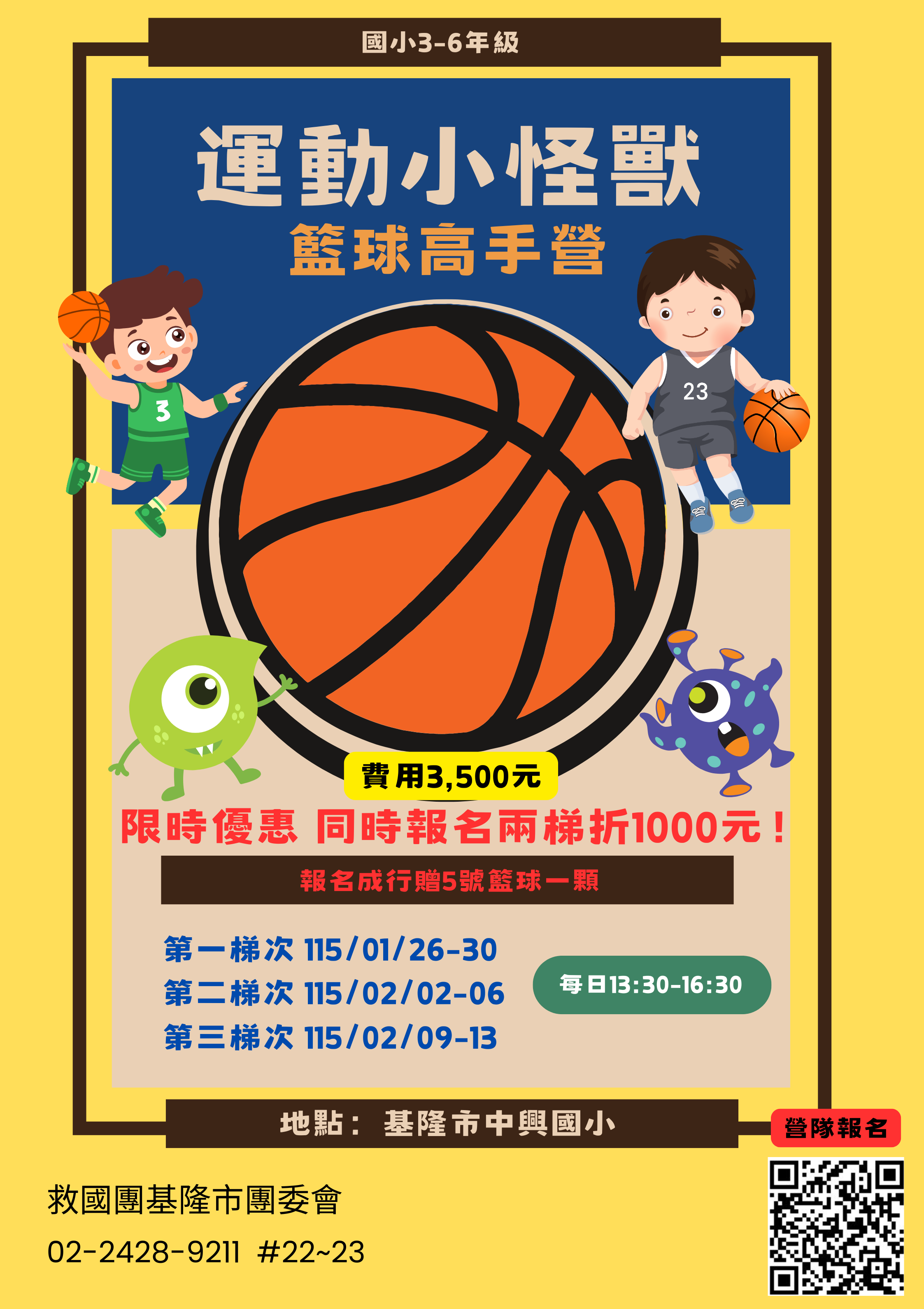 專為熱愛籃球的國小學生設計,旨在培養他們的基礎技能和團隊合作精神。營隊將由專業教練指導,內容包括: